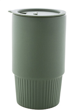 Vysoce kvalitní keramický cestovní hrnek s matným vnějším povrchem a plastovým víčkem z polypropylenu. 420 ml.