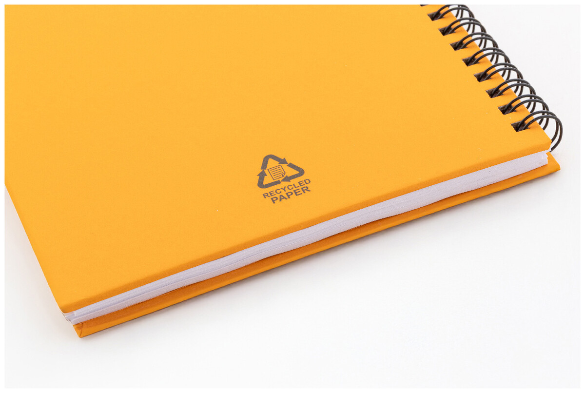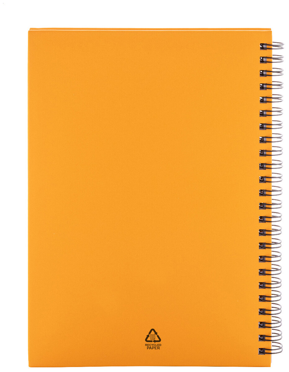 Spirálový blok A5 s 80 linkovanými listy z recyklovaného papíru.