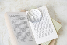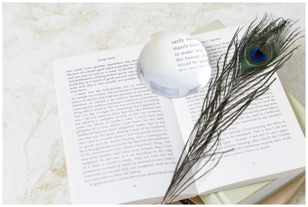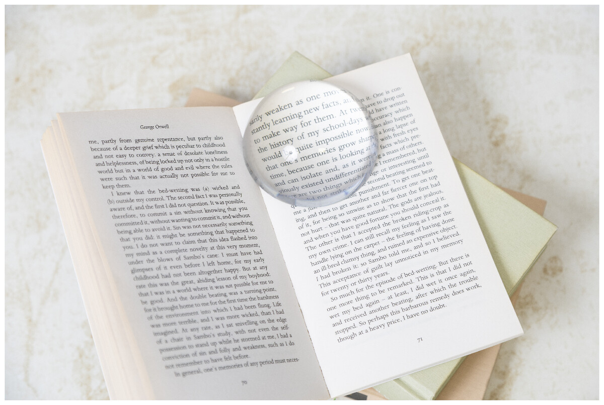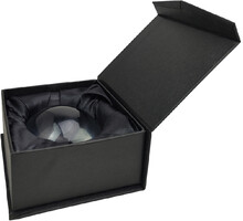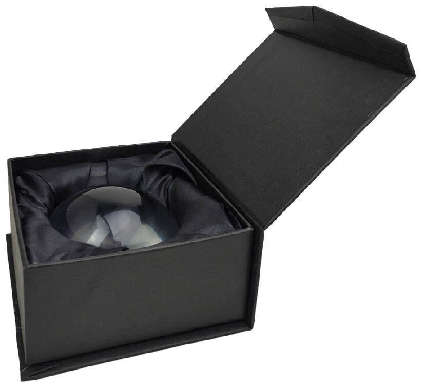 Těžítko se skleněnou kopulí a lupou. V dárkové krabičce z černého papíru se sametovou vložkou a magnetickým zapínáním.