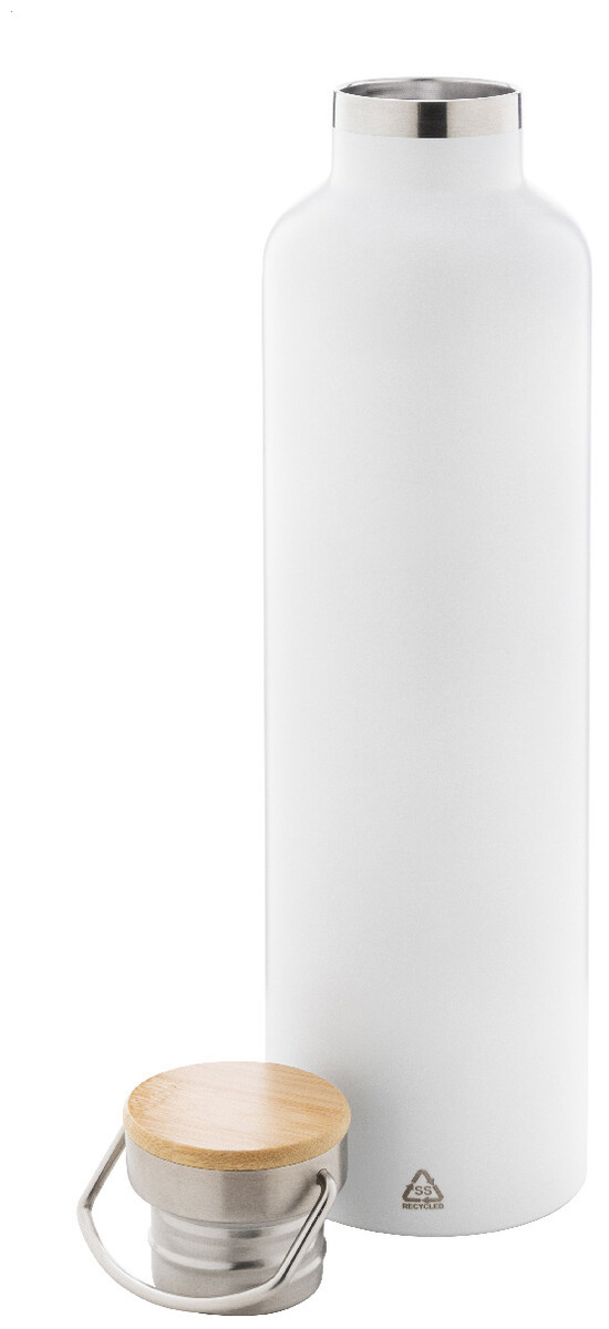 Dvoustěnná vakuově izolovaná láhev z recyklované nerezové oceli s bambusovým víčkem, 1000 ml.