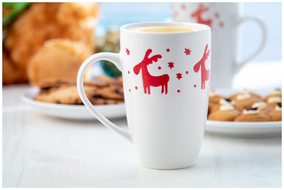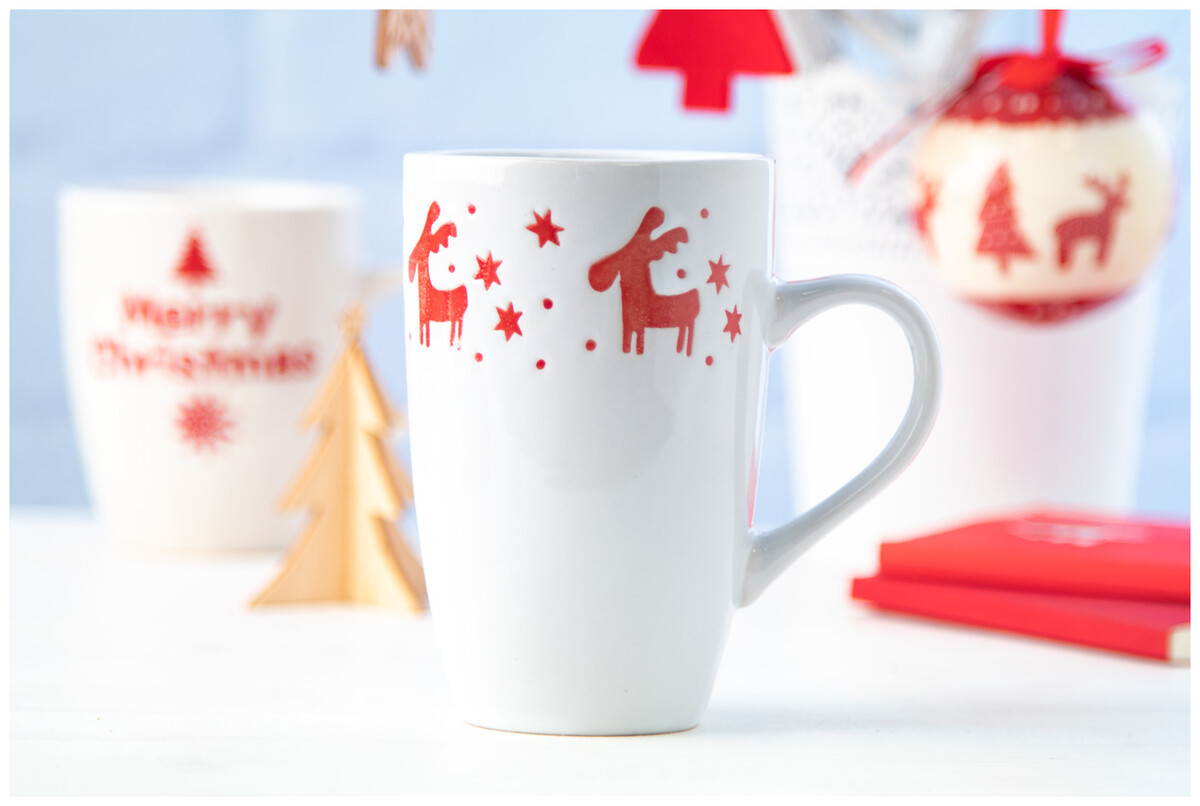 Porcelánový hrnek s vánočním designem, 400 ml. V papírové dárkové krabičce.