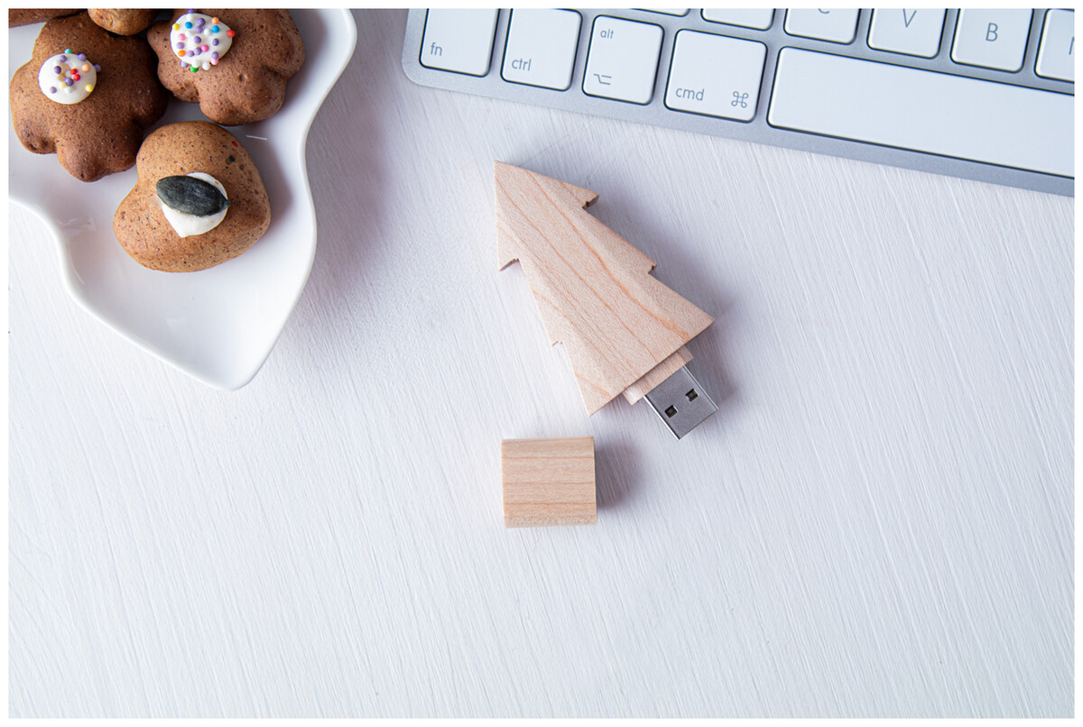 Dřevěný USB flah disk 8/16/32GB ve tvaru stromečku.