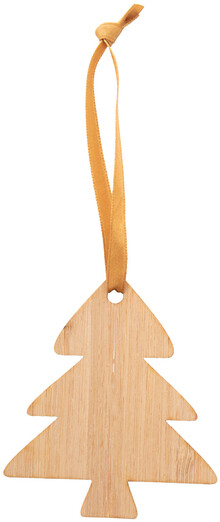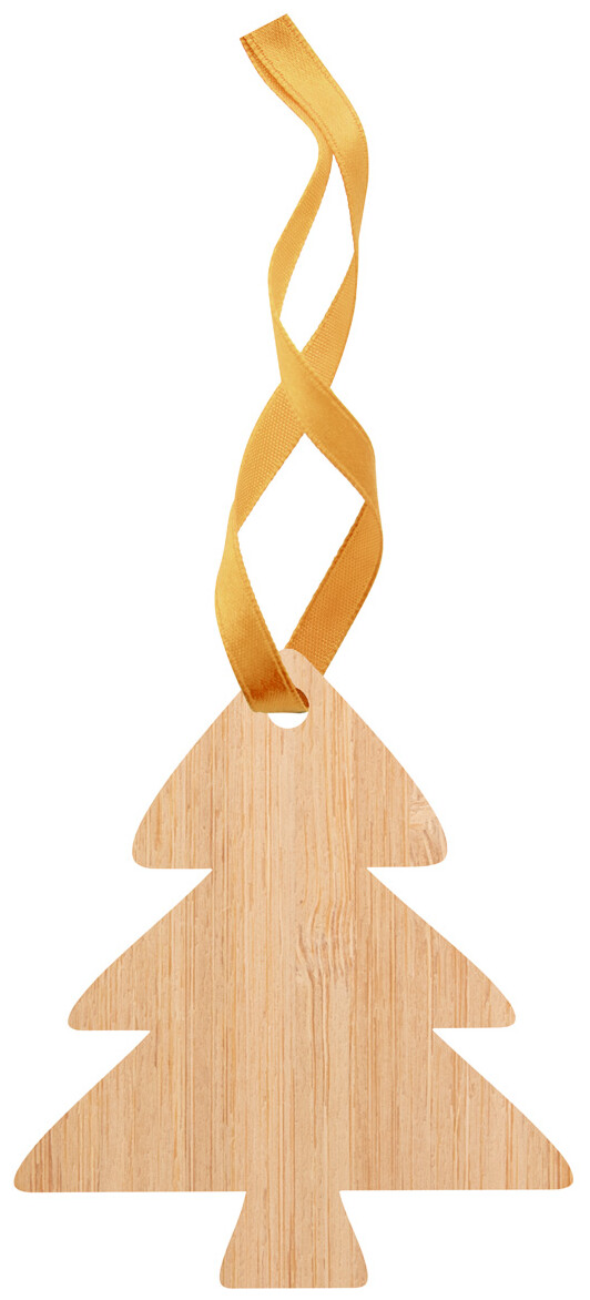 Vánoční ozdoba z bambusové překližky se zlatou stuhou. Dodáváno s oddělenou stuhou.
