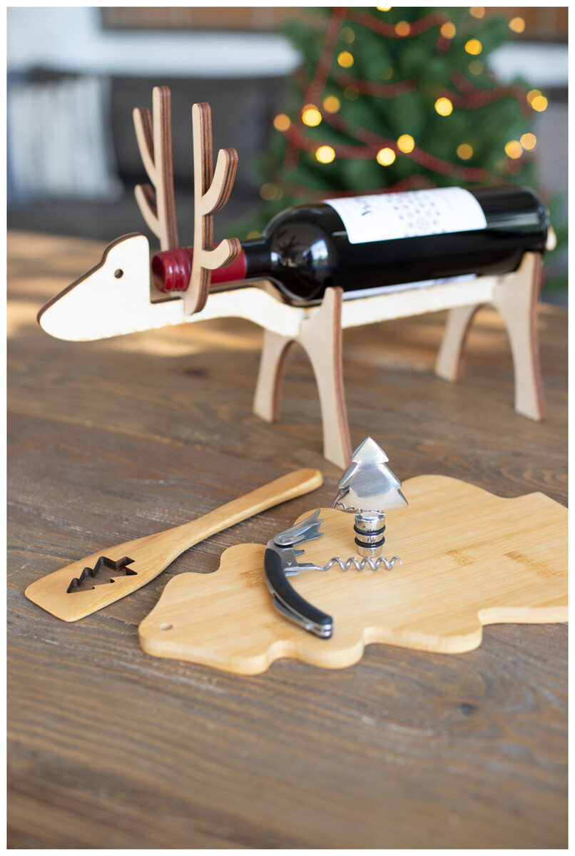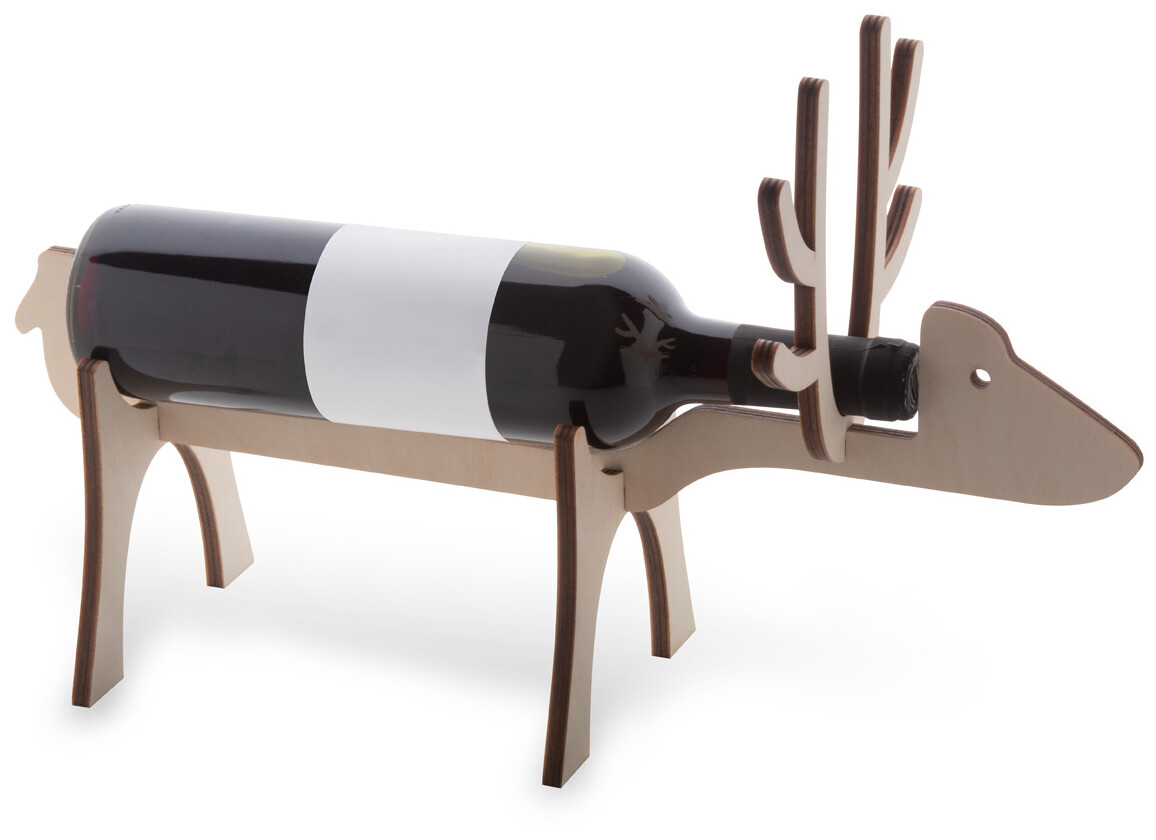 Stojan na láhev z březové překližky ve tvaru soba. Dodáváno rozložené.
