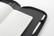 Luxusní složka na dokumenty A5 na zip z recyklované umělé kůže s 64 linkovanými listy a blokem z recyklovaného papíru. S několika vnitřními kapsami na karty a dokumenty.