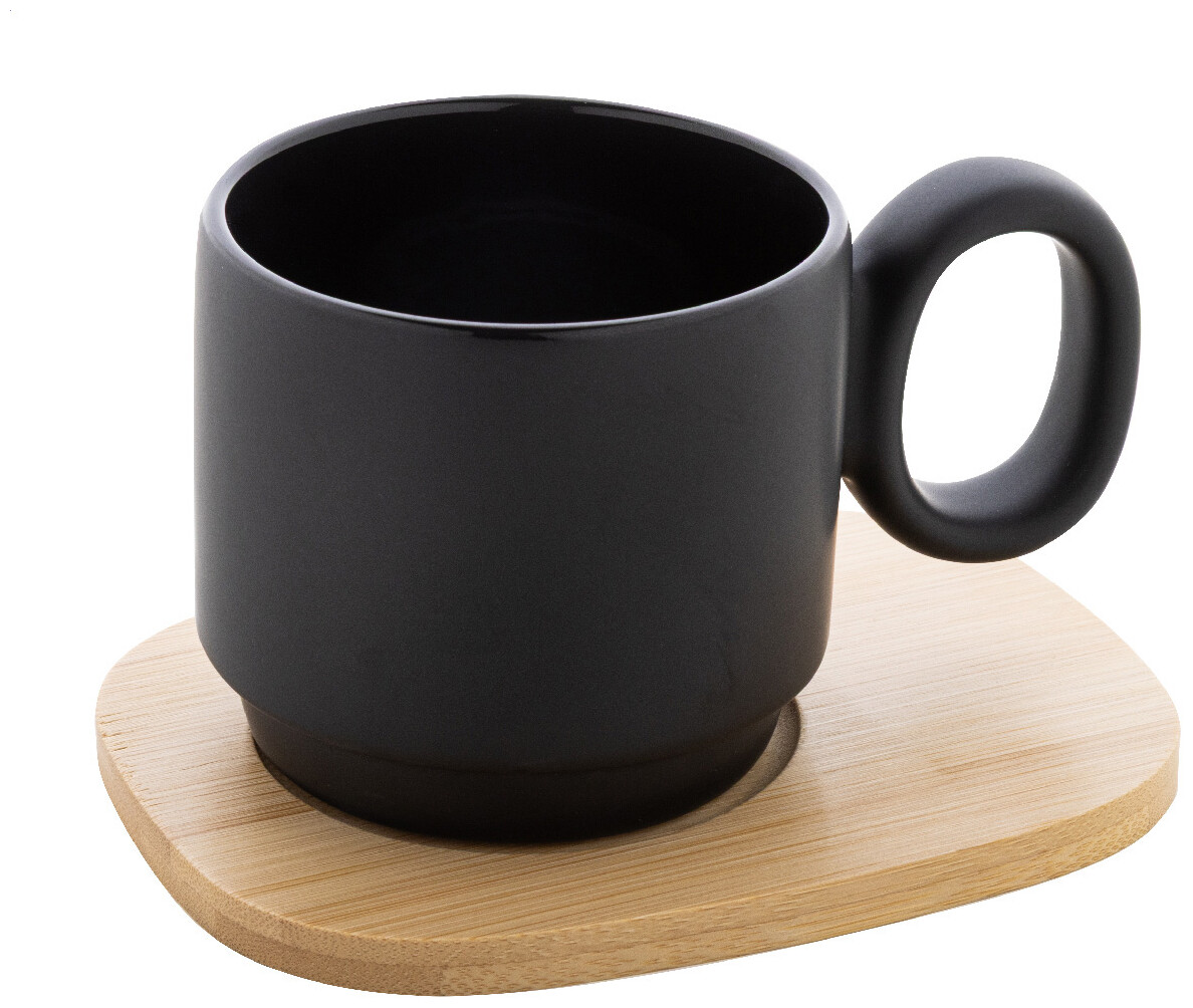 Vysoce kvalitní keramický hrnek s matným vnějším a lesklým vnitřním povrchem. Včetně bambusového servírovacího podnosu. 220 ml. V krabičce z kraftového papíru.