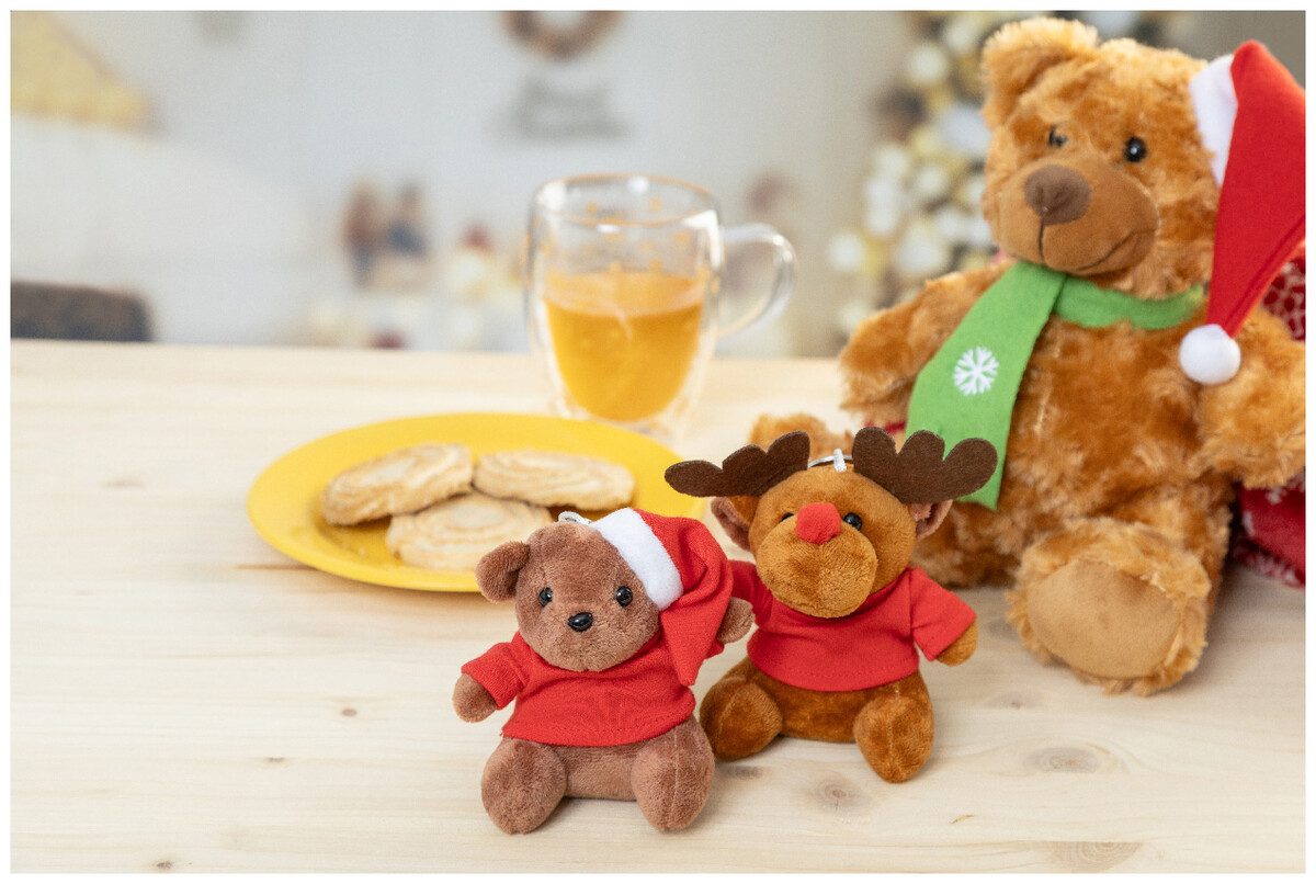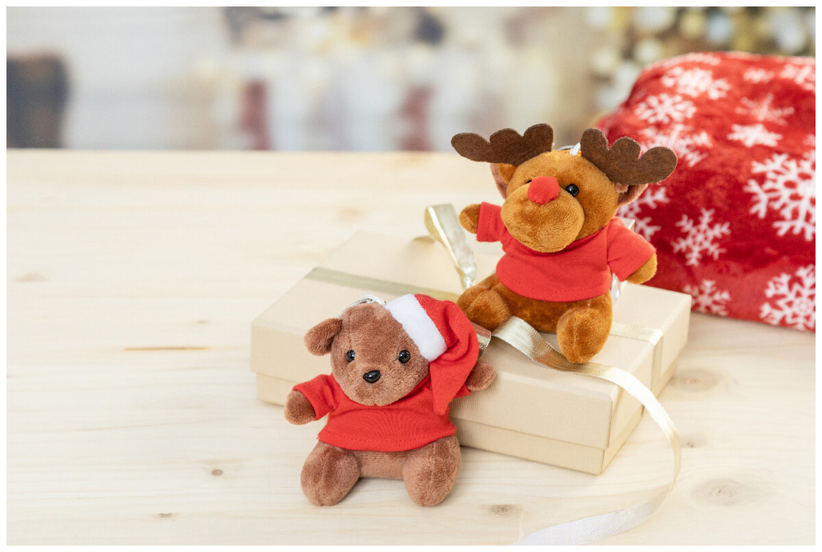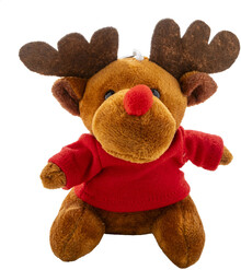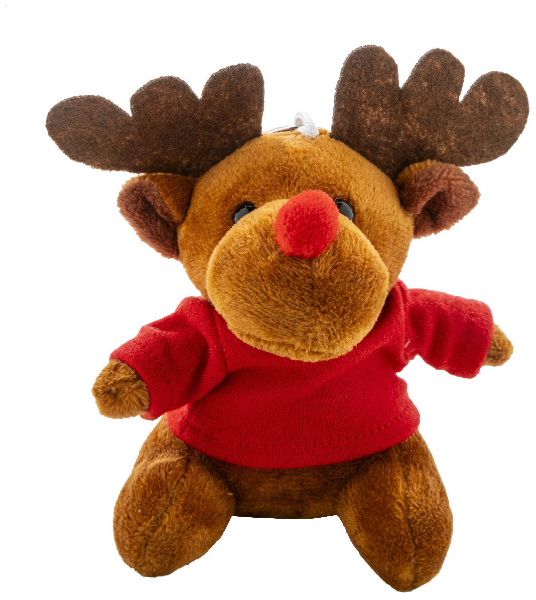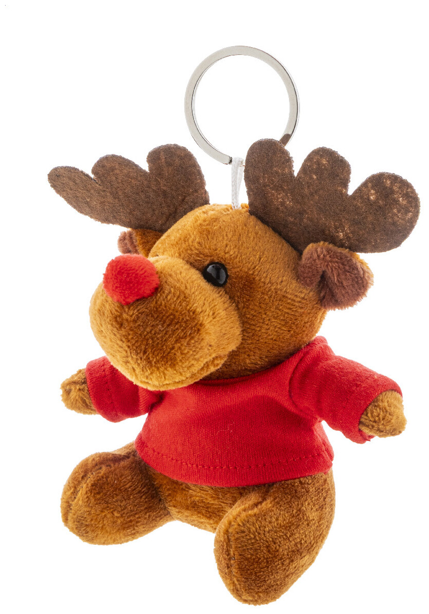 Plyšový vánoční přívěsek na klíče s motivem soba a tričkem na potisk.