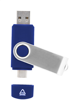 Otočný USB flash disk OTG v pouzdře z recyklovaného ABS a kovu s pamětí 8/16/32 GB. S připojeními USB a USB-C. USB 2.0.