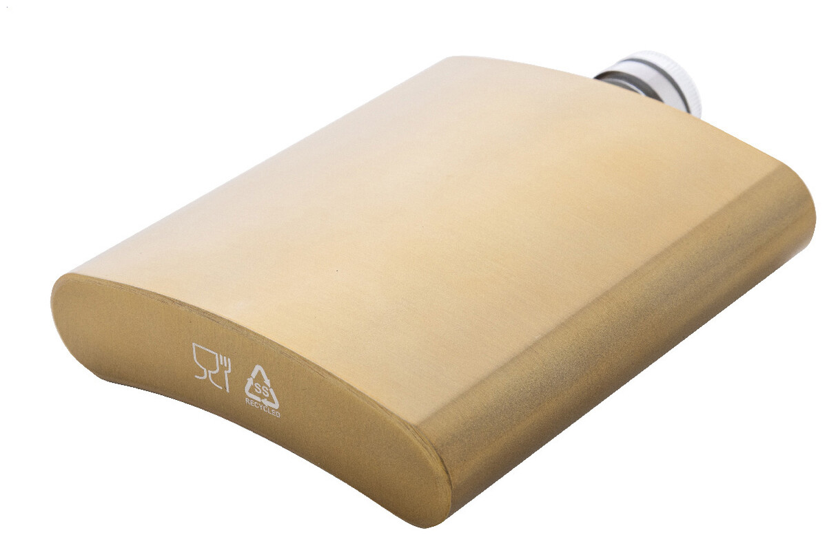Recyklovaná nerezová butylka s lesklým kovovým povrchem, 200 ml.