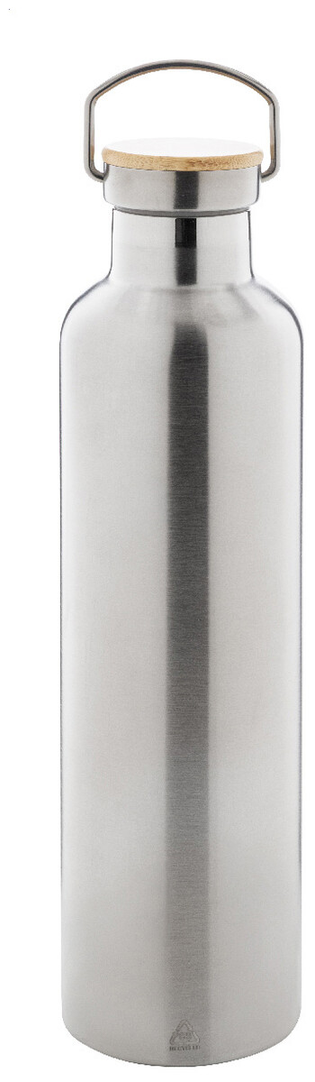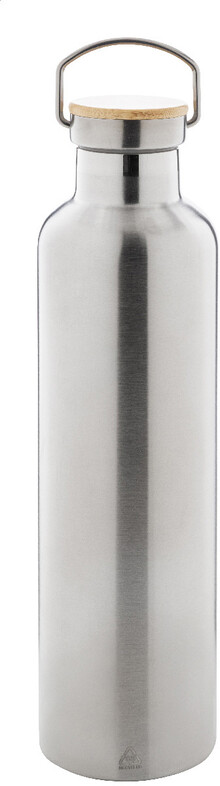 Dvoustěnná vakuově izolovaná láhev z recyklované nerezové oceli s bambusovým víčkem, 1000 ml.