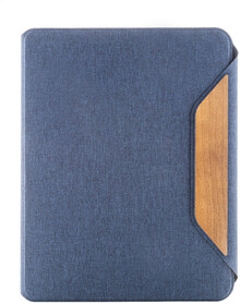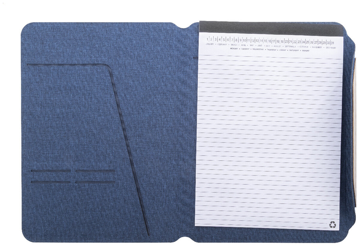 Složka na dokumenty A4 z RPET polyesteru s několika vnitřními kapsami a magnetickým zapínáním s detaily z ořechového dřeva. S linkovaným blokem z recyklovaného papíru s 20 listy.