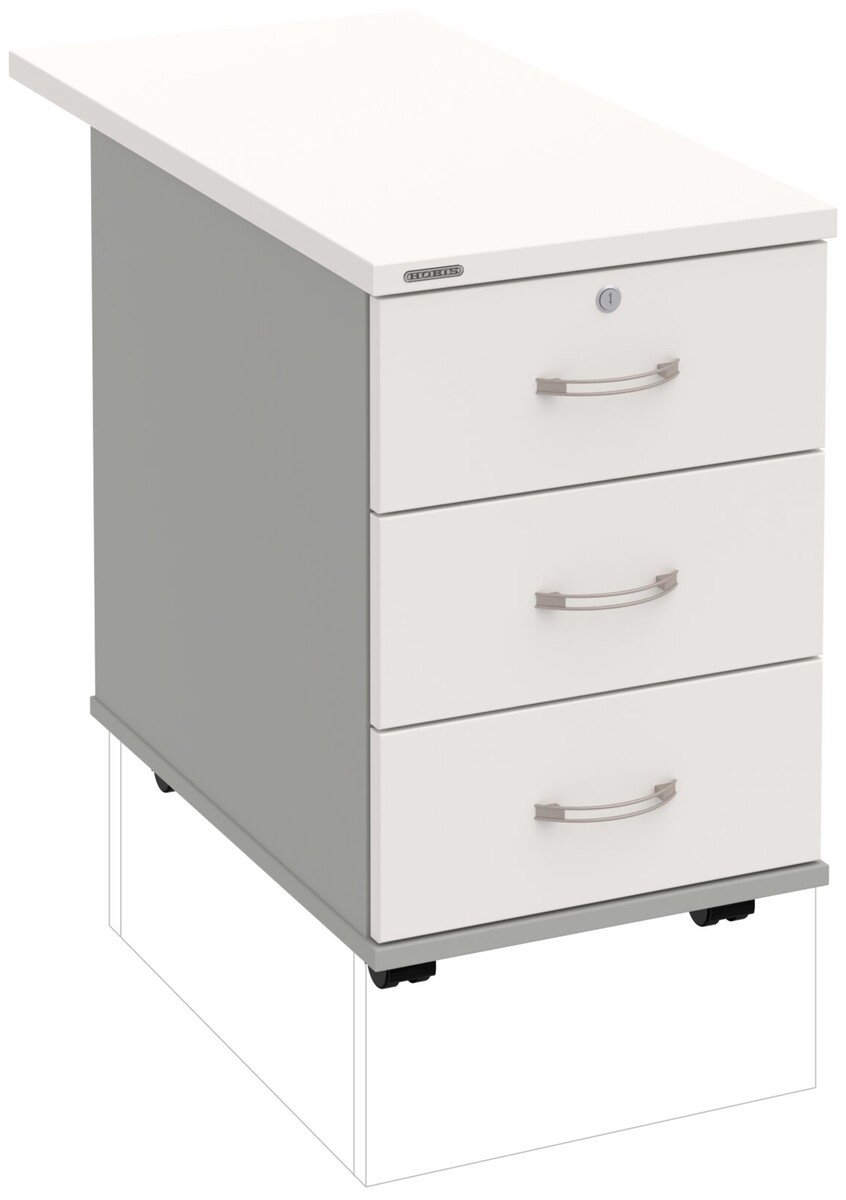 Kancelářské kontejnery nabízíme ve 4 modelech, které se liší uspořádáním zásuvek. Využití naleznou,spolu s ostatními řadami kancelářského nábytku HOBIS, ve všech kancelářských prostorech. Rozměry jsou 40 cm šířka, 60 cm hloubka a 60 cm výška. Protože jsme si vědomi nároků na zajištění bezpečnosti obsahu kontejnerů, osadili jsme většinu z nich zámky s centrálním zamykáním. Stačí zamknout jednu zásuvku a současně tak uzamknete i všechny ostatní. Díky integrovanému systému STOPCONTROL v uzamykacím mechanismu se nemusíte bát převrhnutí kontejneru nebo případného skřípnutí rukou. Systém zaručí, že při otevření jedné zásuvky se ostatní zásuvky automaticky zablokují. Stoly můžete vybírat z nabídky kancelářského nábytku HOBIS.