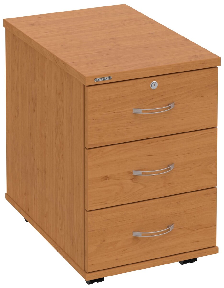 Kancelářské kontejnery nabízíme ve 4 modelech, které se liší uspořádáním zásuvek. Využití naleznou,spolu s ostatními řadami kancelářského nábytku HOBIS, ve všech kancelářských prostorech. Rozměry jsou 40 cm šířka, 60 cm hloubka a 60 cm výška. Protože jsme si vědomi nároků na zajištění bezpečnosti obsahu kontejnerů, osadili jsme většinu z nich zámky s centrálním zamykáním. Stačí zamknout jednu zásuvku a současně tak uzamknete i všechny ostatní. Díky integrovanému systému STOPCONTROL v uzamykacím mechanismu se nemusíte bát převrhnutí kontejneru nebo případného skřípnutí rukou. Systém zaručí, že při otevření jedné zásuvky se ostatní zásuvky automaticky zablokují. Stoly můžete vybírat z nabídky kancelářského nábytku HOBIS.