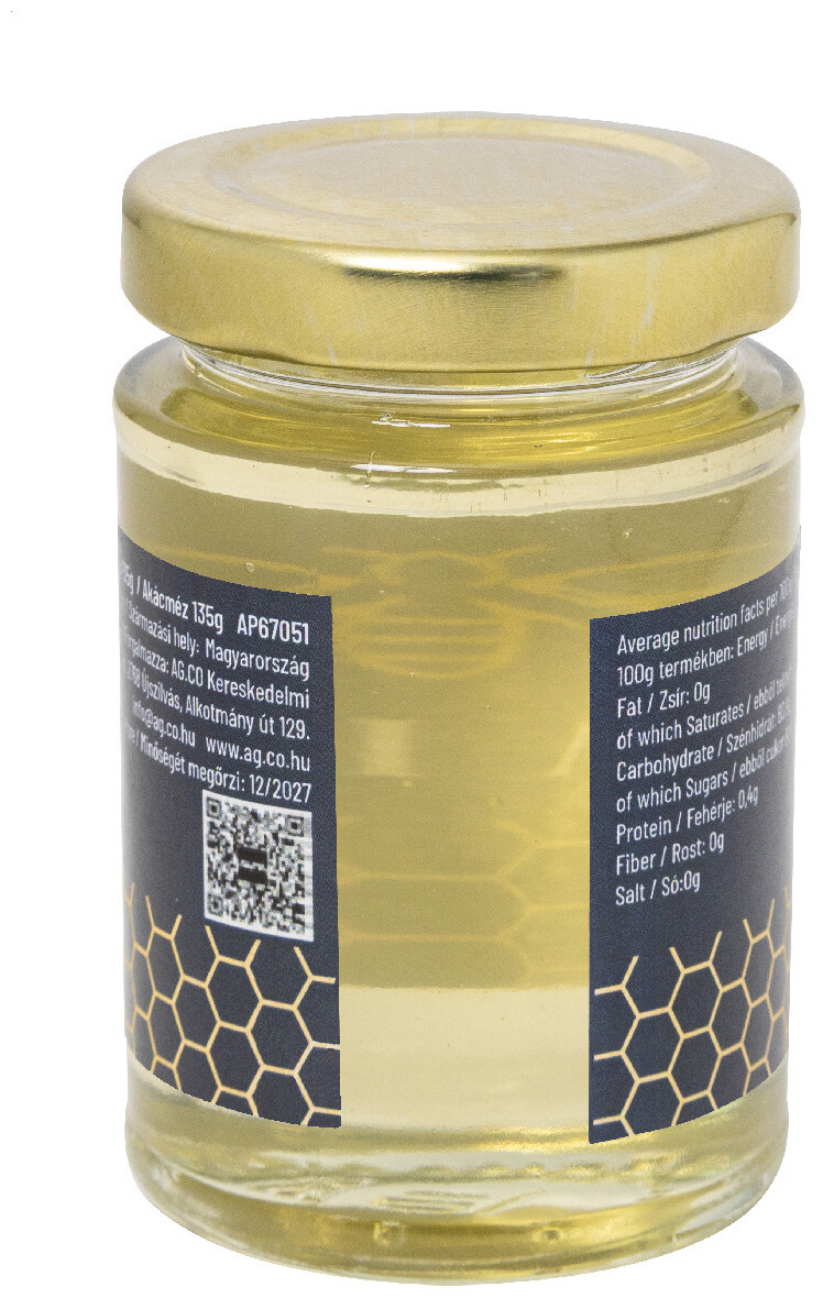 Akátový med v skleněné nádobě s kovovým víčkem, 135 gramů.