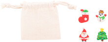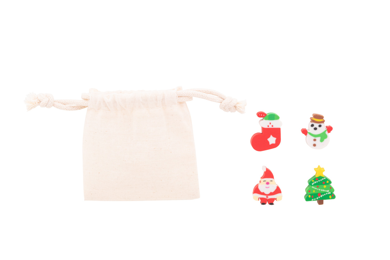 4dílná sada gum ve vánočním designu, v bavlněném pytlíku.