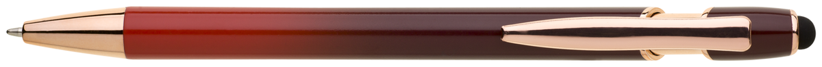 Elegantní kuličkové pero s kovovým tělem v moderním červeno-oranžovém přechodu a detaily z růžového zlata. Na konci má dotykovou část pro ovládání mobilu či tabletu. Výsledný efekt laserového značení je světle stříbrný až bílý. Náplň X-20 modře píšící.