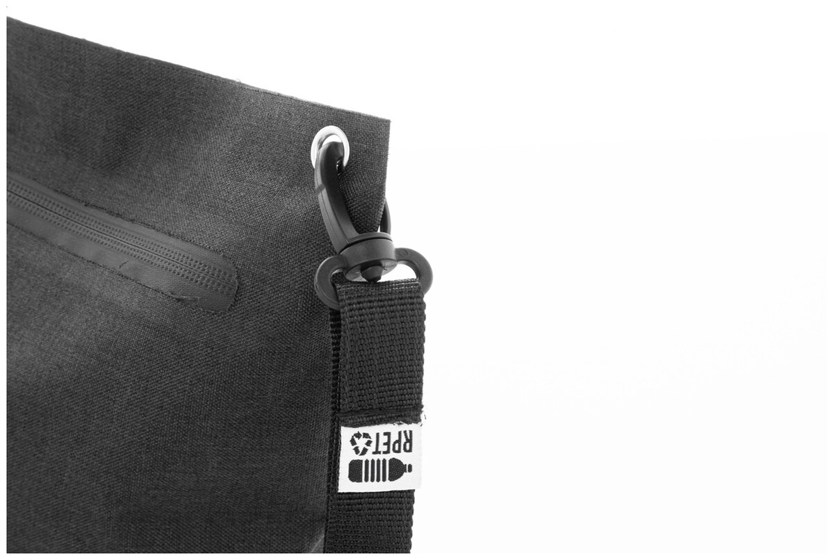 Vodotěsná kosmetická taštička na zip z 300D RPET polyesteru s karabinou na zápěstí. S výrazným štítkem RPET.