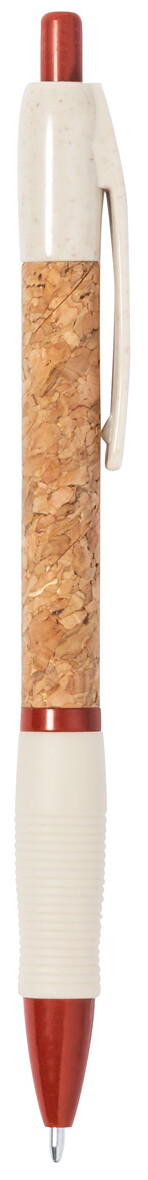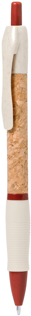 Ekologické plastové kuličkové pero z pšeničné slámy s pouzdrem potaženým přírodním korkem a pryžovým úchopem. S modrou náplní.