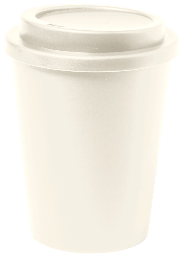 Dvoustěnný termo hrnek z PP plastu s víčkem na pití, 300 ml.