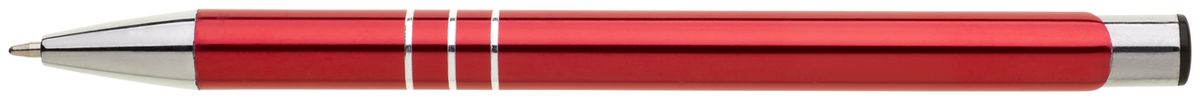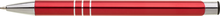 TRIALI hliníková reklamní tužka. Lesklé, červené tělo se třemi stříbrnými proužky a chromovými doplňky.