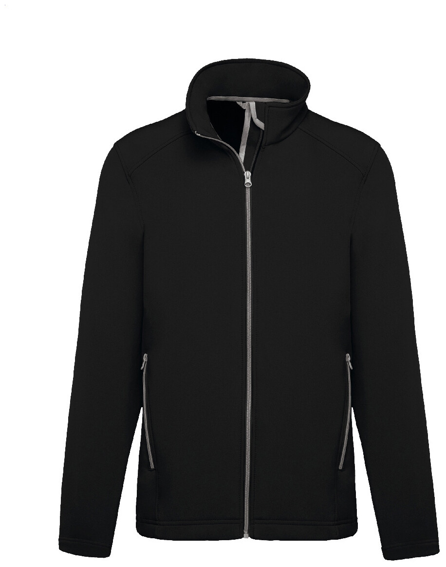 Dvouvrstvá softshellová bunda na zip s bočními kapsami na zip. S kontrastními zipy. Vodoodpudivá tkanina. Vnější strana: 95 % polyester a 5 % elastan. Vnitřní strana: 100% polyester micro polar fleece. Materiál: 300 g/m2. Výrobek značky Kariban.
