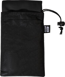 Sportovní ručník z mikrovlákna RPET v přepravním pouzdře z netkané tkaniny RPET s charakteristickou etiketou RPET. Polyester RPET, 140 g/m2.