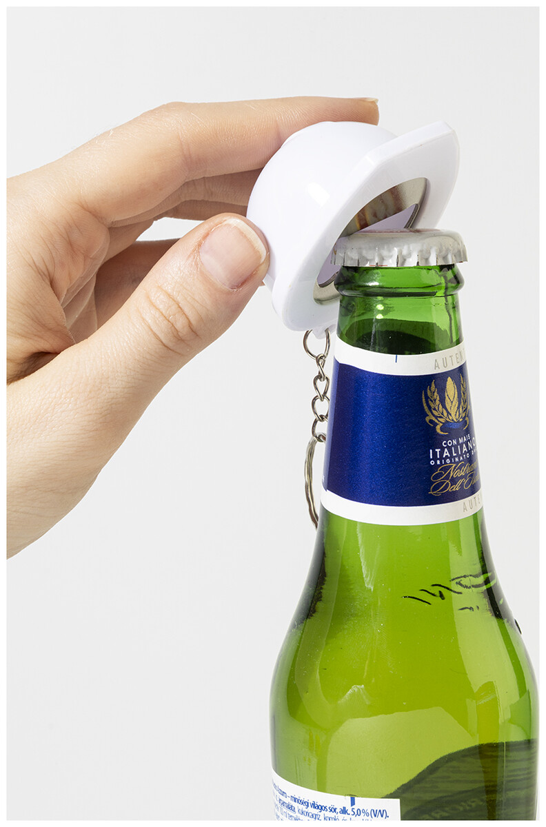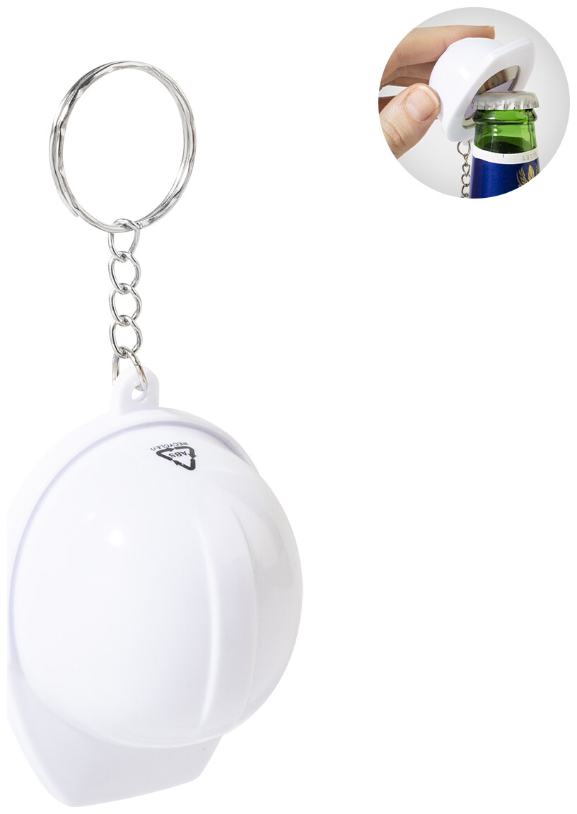 Přívěsek na klíče ve tvaru bezpečnostní přilby z recyklovaného ABS materiálu s otvírákem na lahve.