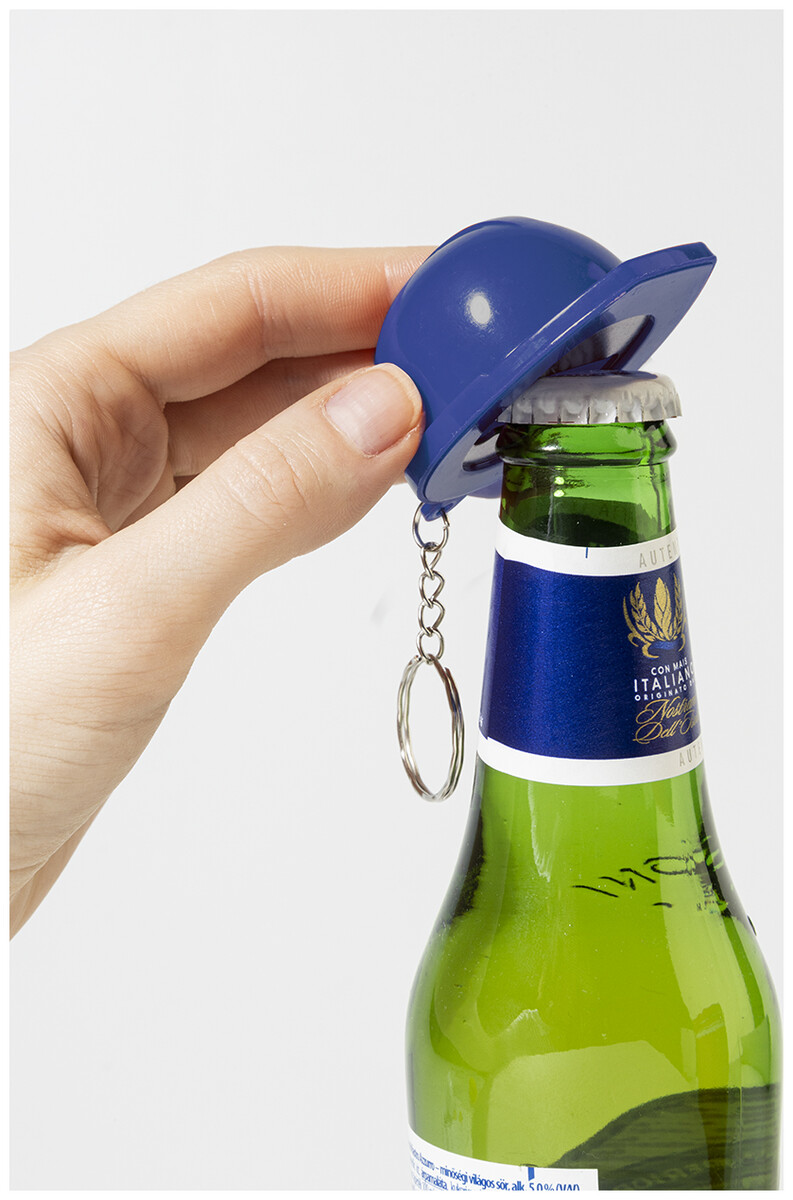 Přívěsek na klíče ve tvaru bezpečnostní přilby z recyklovaného ABS materiálu s otvírákem na lahve.