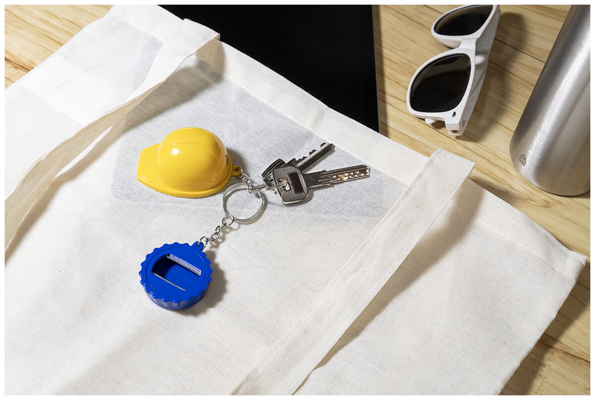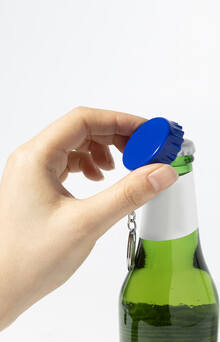 Přívěsek na klíče ve tvaru víčka z recyklovaného ABS plastu s otvírákem.