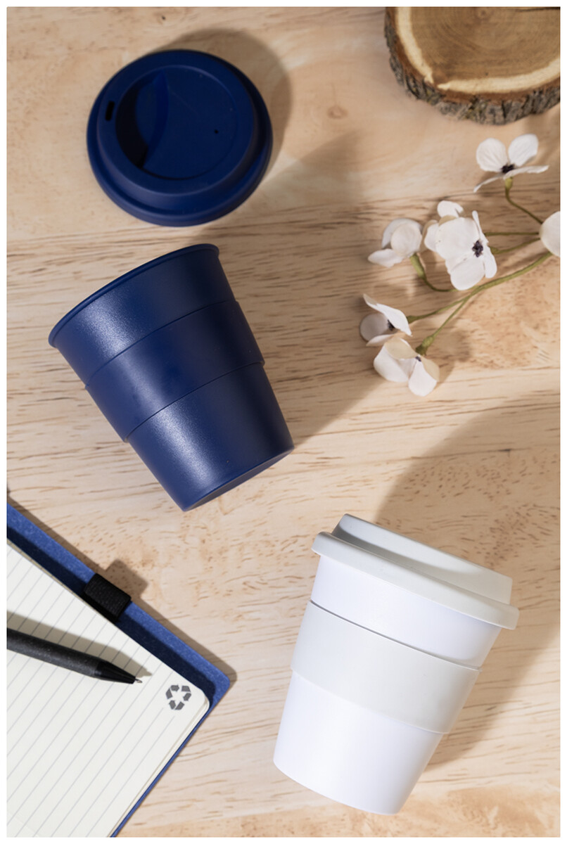 Jednostěnný cestovní kelímek z plastu PP s víčkem z TPE a úchytem. 350 ml.
