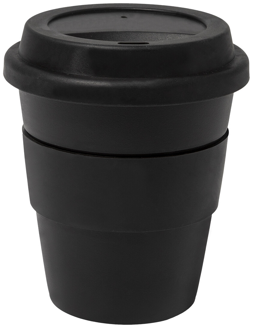 Jednostěnný cestovní kelímek z plastu PP s víčkem z TPE a úchytem. 350 ml.