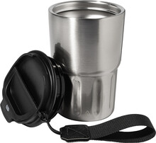 Dvoustěnný termo hrnek z recyklované nerezové oceli s izolačním víčkem z PP. S poutkem z RPET polyesteru. 350 ml.