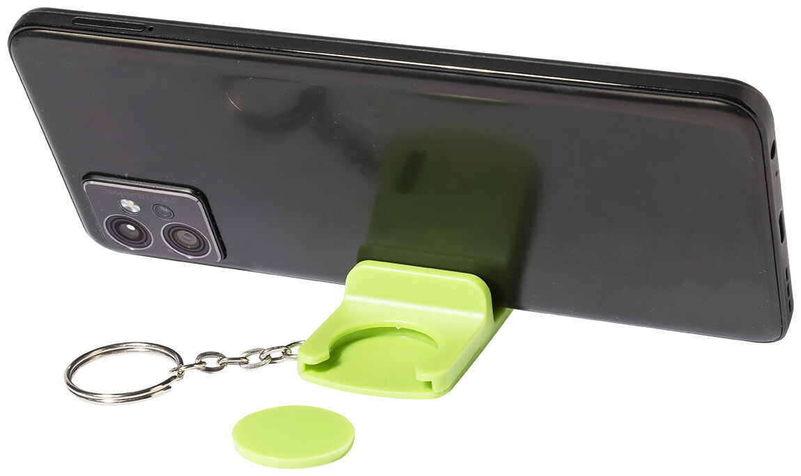 Přívěsek klíče se žetonem do košíku z recyklovaného ABS materiálu s držákem na mobilní telefon. Velikost mince: ø23×2 mm.