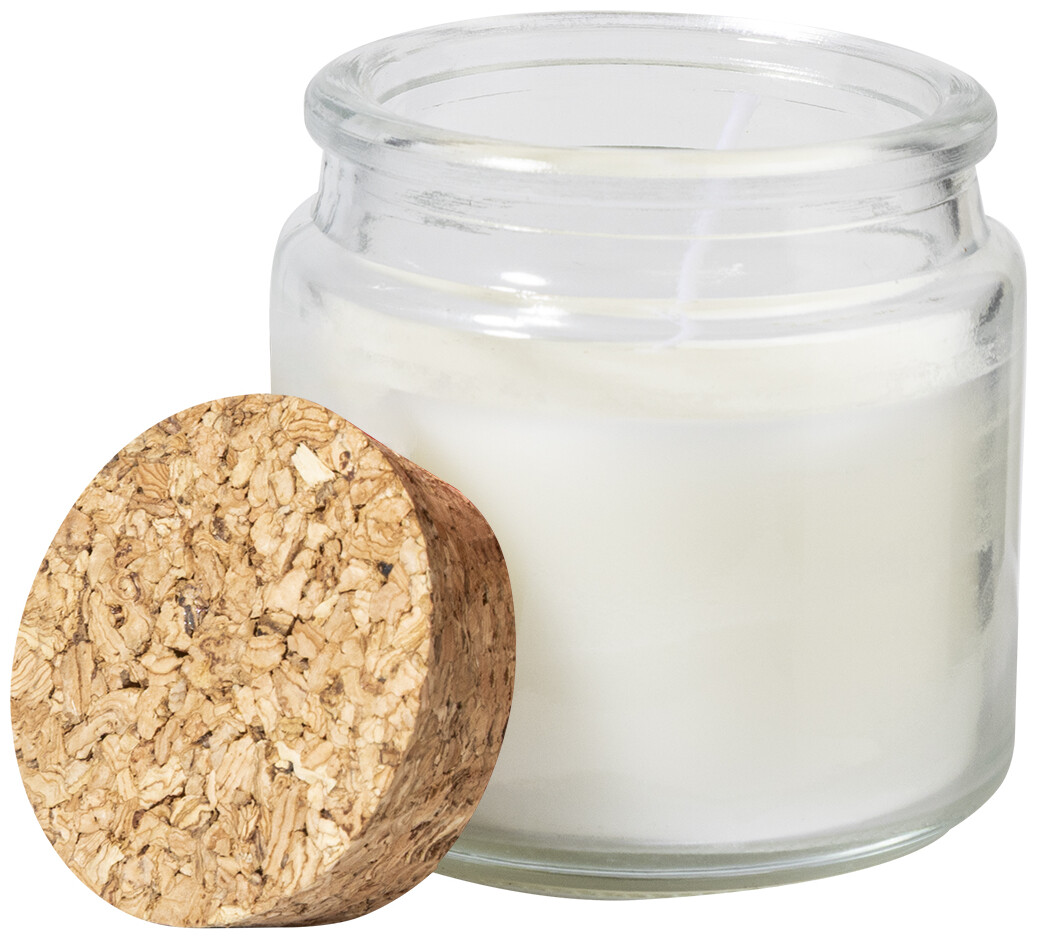 Vosková svíčka z rostlinného vosku s vůní vanilky ve skleněném svícnu s víčkem z přírodního korku. S 80 gramy vosku. Doba hoření: 16 hodin. V krabičce z kraftového papíru.