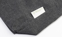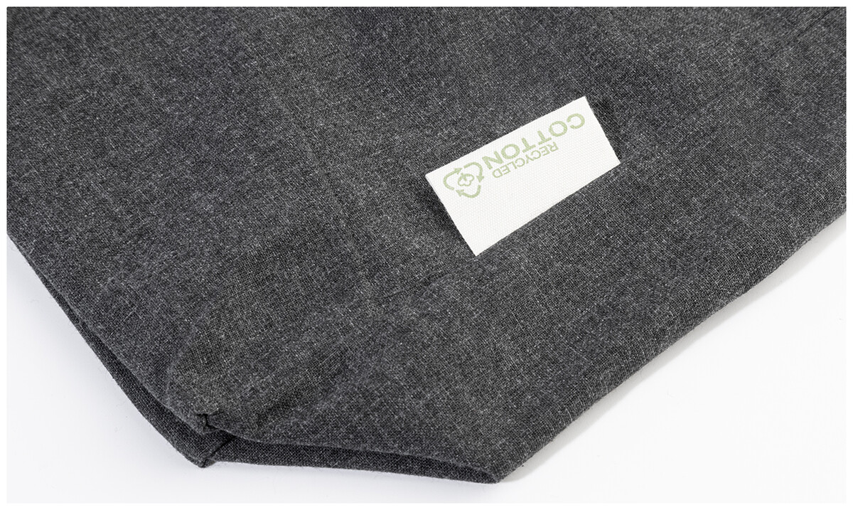 Nákupní taška s klínkem a dlouhými uchy ze 70 % recyklované bavlny a 30 % RPET polyesteru, 140 g/m2. S výraznou etiketou o recyklované bavlně.