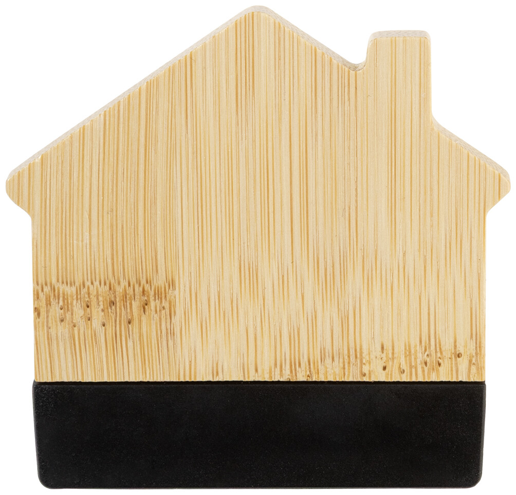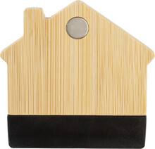 Bambusový magnet na ledničku ve tvaru domečku s klipem na poznámky. Slouží také jako klip na uzavírání sáčků.