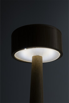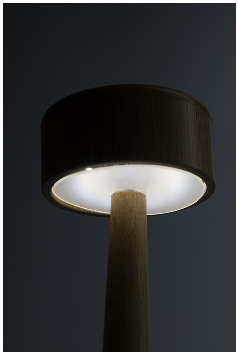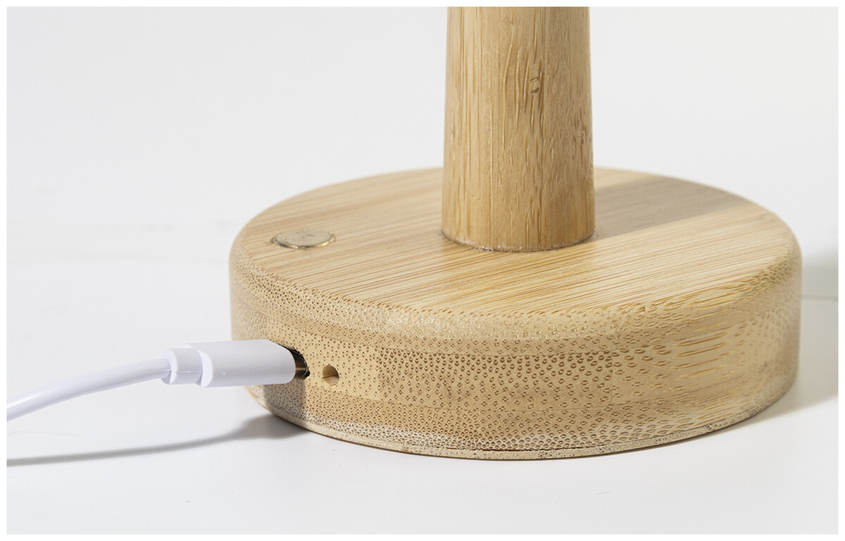 Bambusová stolní lampa s 24 LED diodami a 800 mAh dobíjecí baterií přes USB. S režimy teplého, přirozeného a studeného světla. Včetně nabíjecího kabelu USB.