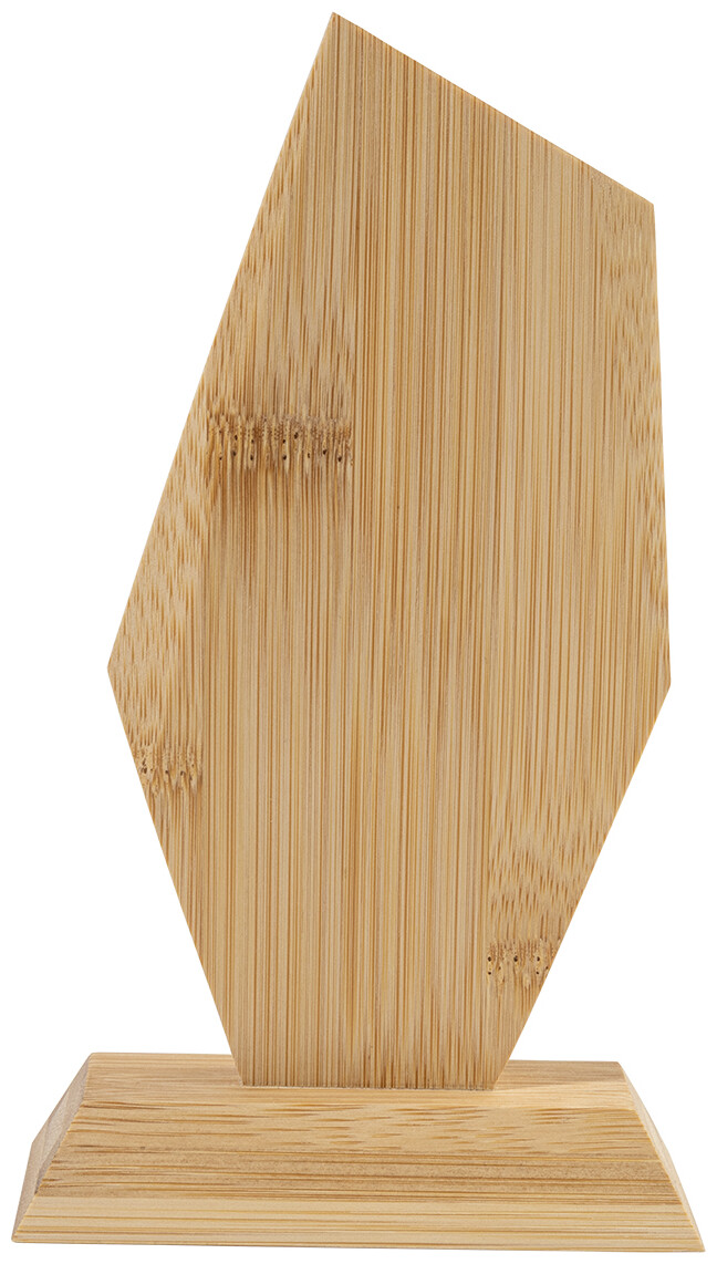 Bambusová trofej hranatého tvaru v dárkové krabičce z kraftového papíru.