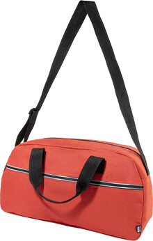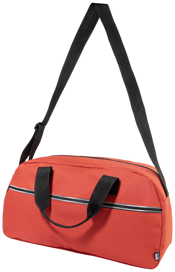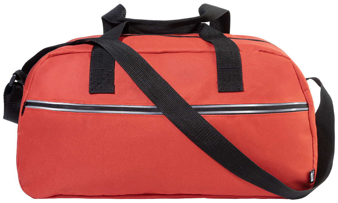 Sportovní taška z RPET s hlavní přihrádkou na zip, přední kapsou na zip s reflexními proužky a nastavitelným ramenním popruhem. Polyester 600D RPET s charakteristickým štítkem RPET.