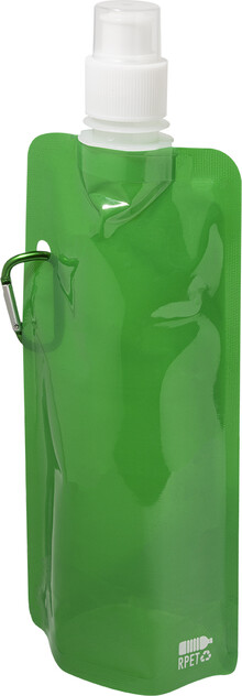 Skládací sportovní láhev z RPET s víčkem na pití a hliníkovou karabinou, 500 ml. Bez BPA. Nevhodná pro sycené nápoje.