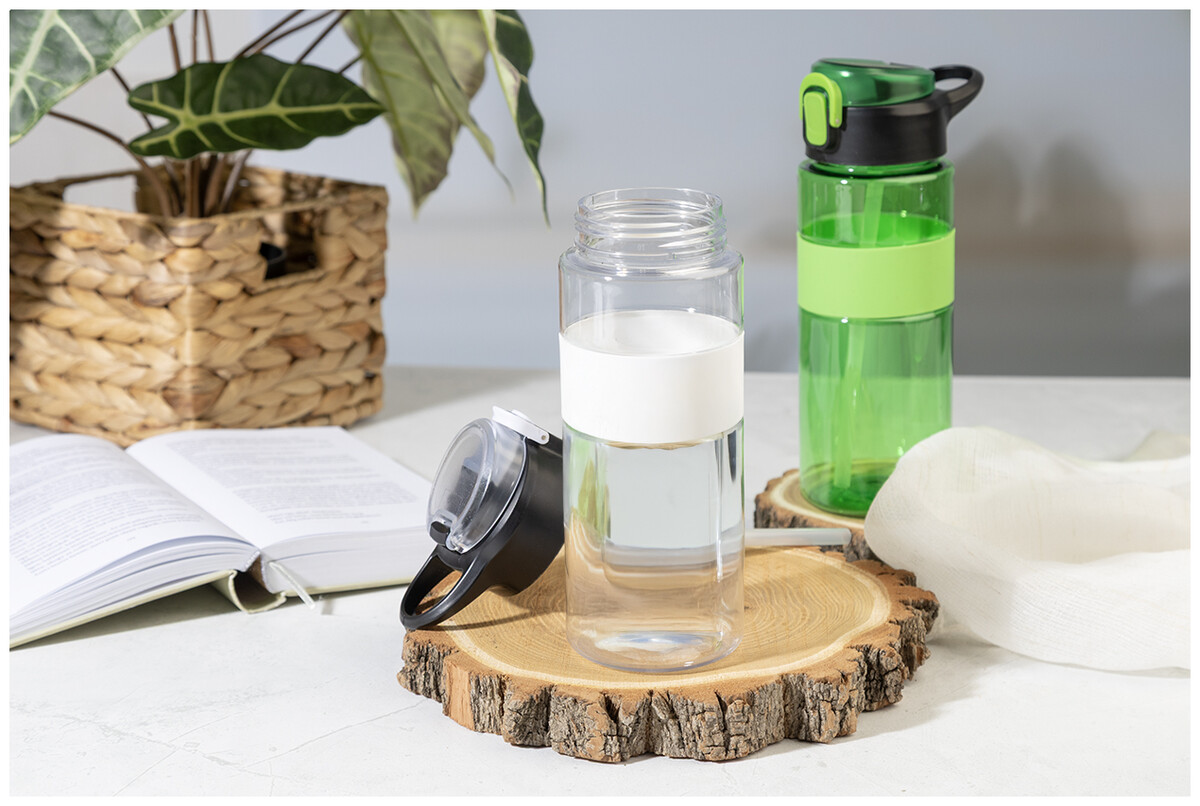 Sportovní láhev z RPET se silikonovým úchopem, automaticky otevíratelným odklápěcím víčkem s integrovaným brčkem, silikonovým náustkem a bezpečnostním zámkem. 700 ml. Bez BPA. Nevhodné pro sycené nápoje.