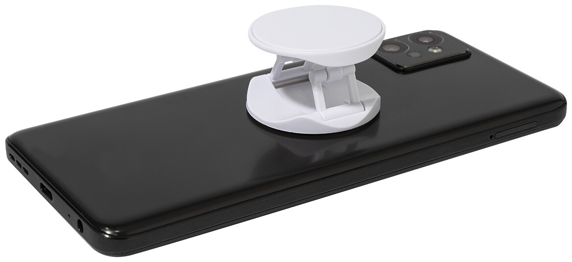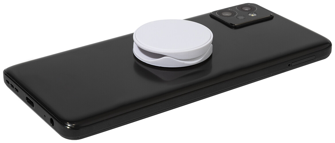 Kulatý držák na mobil z recyklovaného ABS se samolepicí základnou.