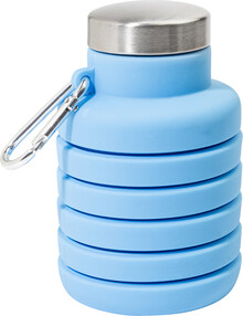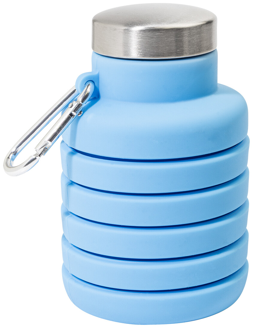 Skládací silikonová láhev s víčkem z nerezové oceli a hliníkovou karabinou. 500 ml