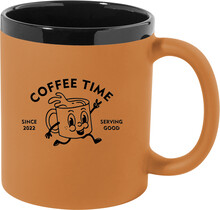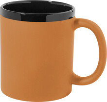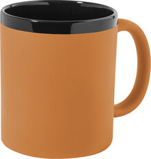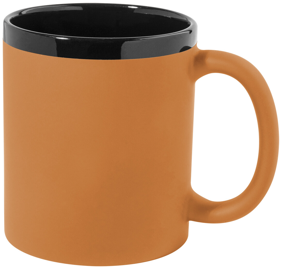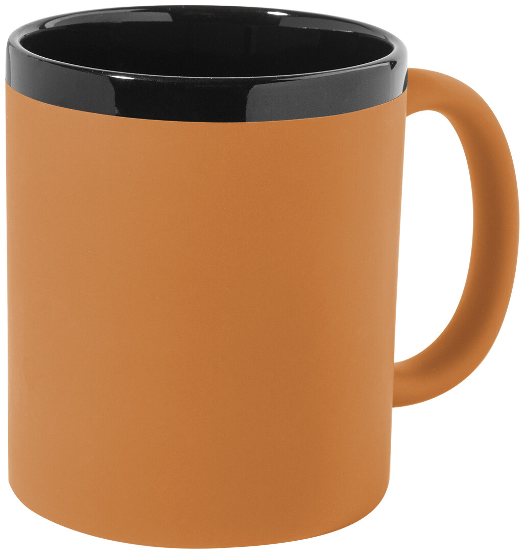Keramický hrnek s měkkým pogumovaným povrchem a černým vnitřkem a okrajem, 300 ml. Se speciálním povrchem pro gravírování, gravírované logo ladí s barvou na vnitřní straně. V krabičce z kraftového papíru.