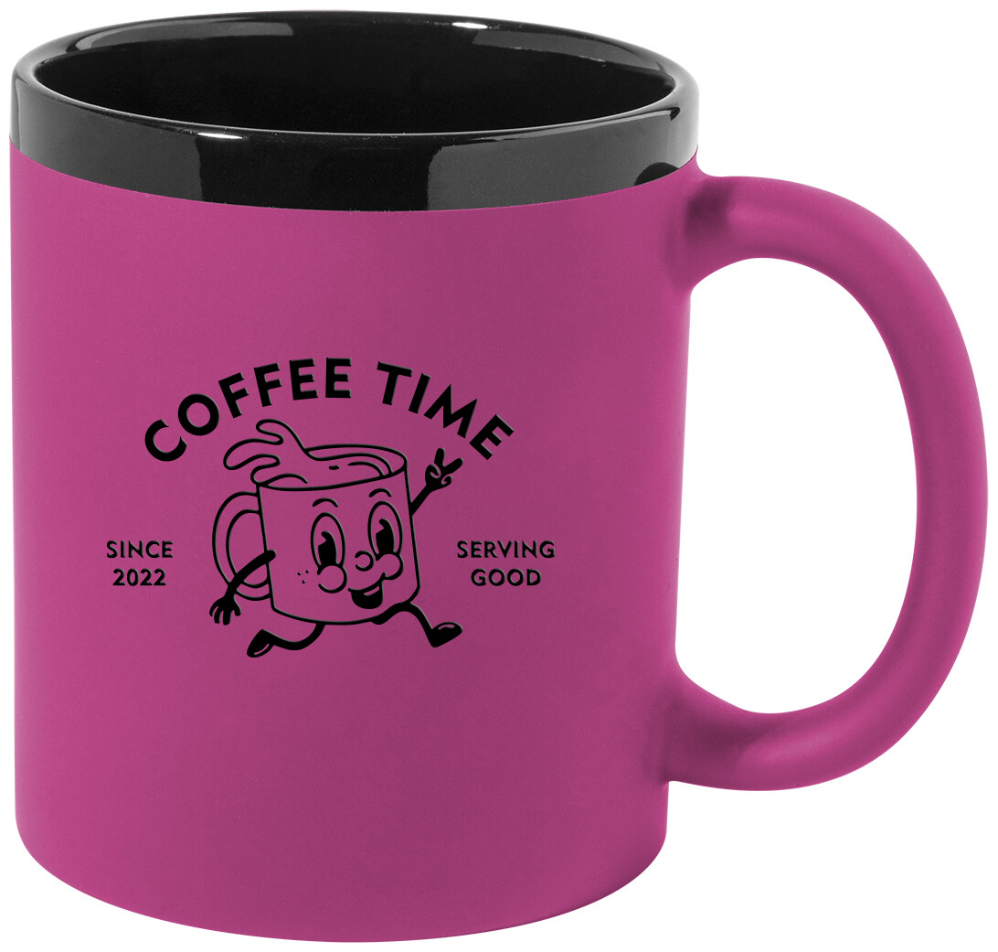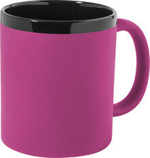 Keramický hrnek s měkkým pogumovaným povrchem a černým vnitřkem a okrajem, 300 ml. Se speciálním povrchem pro gravírování, gravírované logo ladí s barvou na vnitřní straně. V krabičce z kraftového papíru.