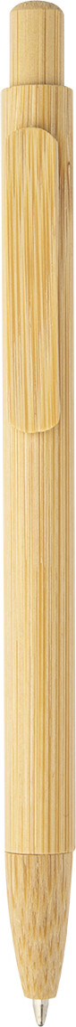Kuličkové pero s bambusovým tělem, klipem, tlačítkem a špičkou. S modrou náplní.