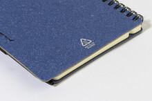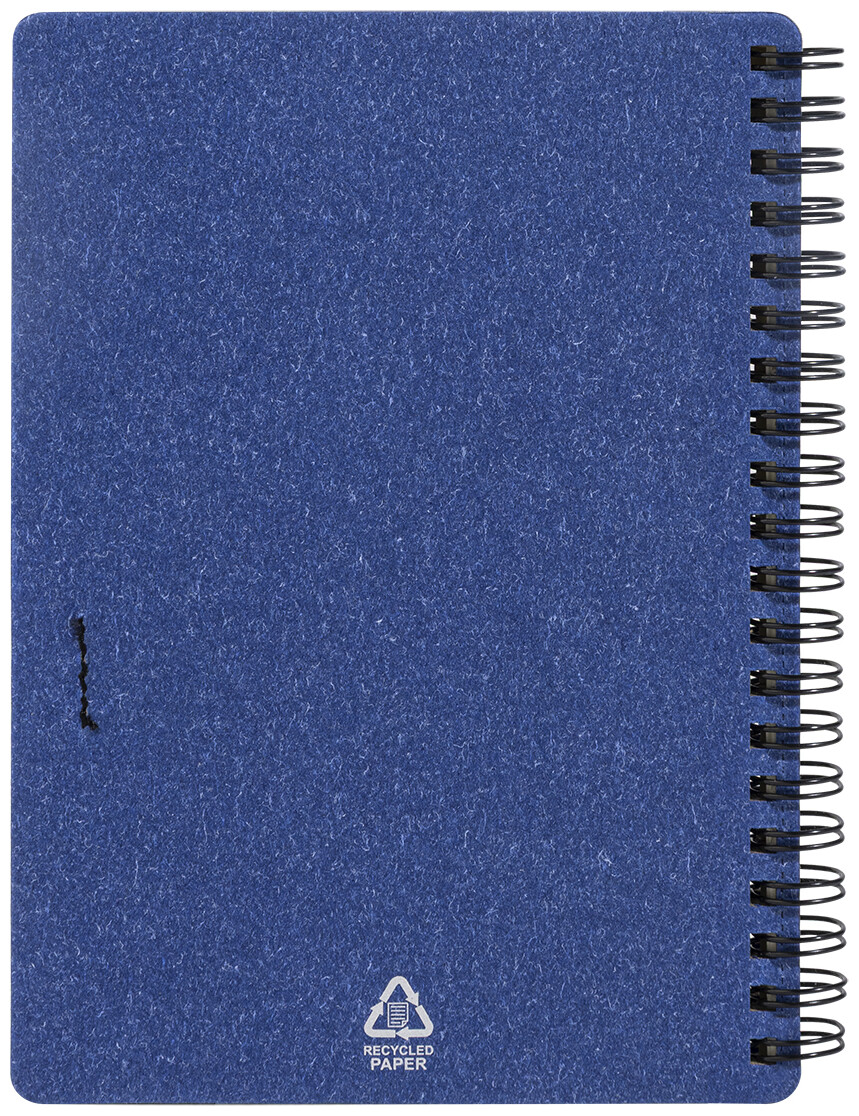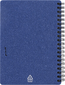 Spirálový blok A6 z recyklovaného papíru s 80 linkovanými listy. Včetně recyklovaného papíru a kuličkového pera z recyklovaného PP s modrou náplní.