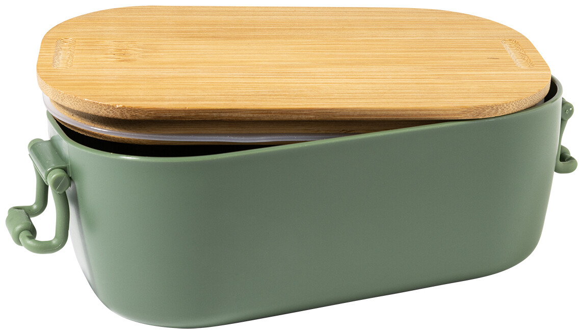 Box na jídlo z PP plastu s bambusovým víkem a uzávěrem na přezku, 1000 ml.