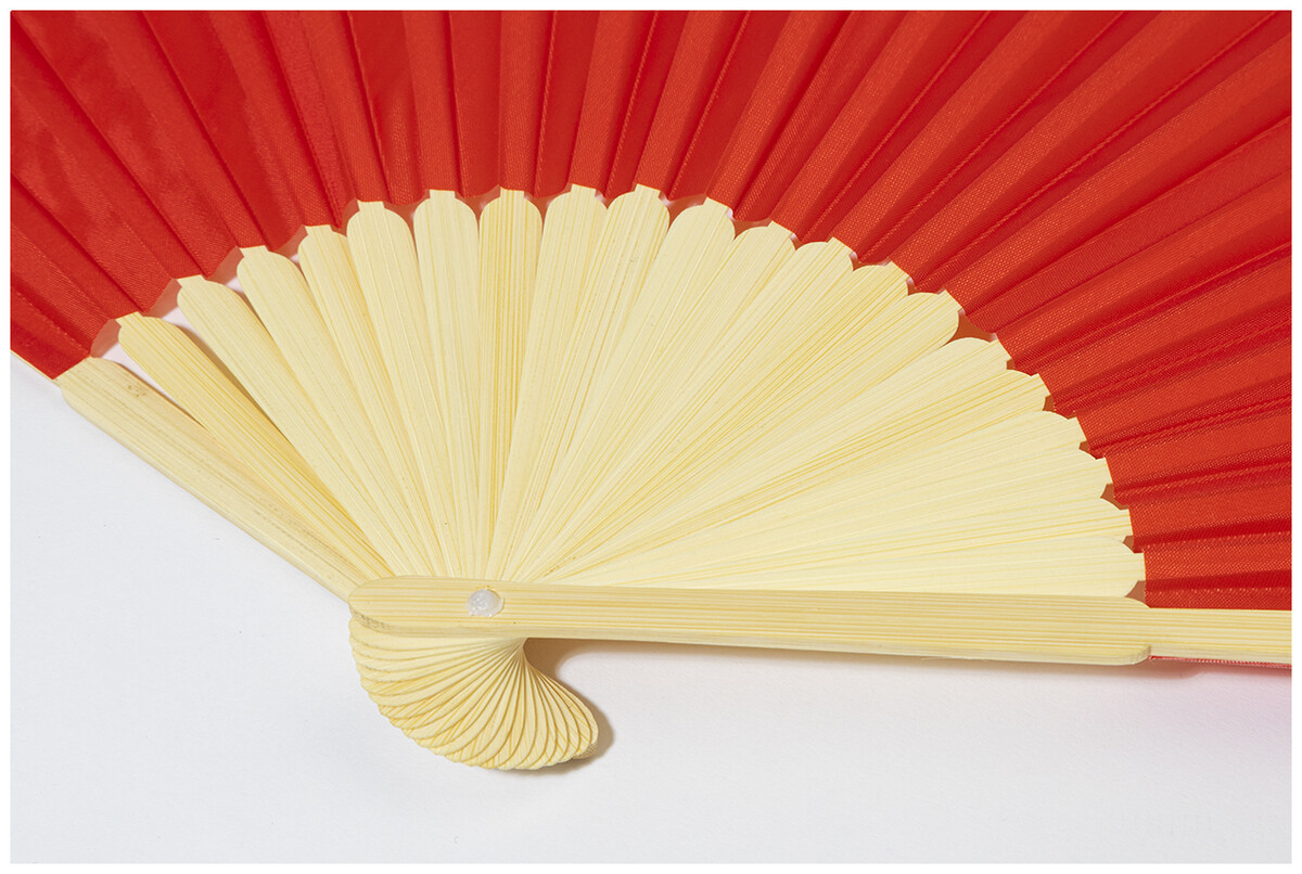 Vějíř z RPET polyesteru s bambusovými žebry.