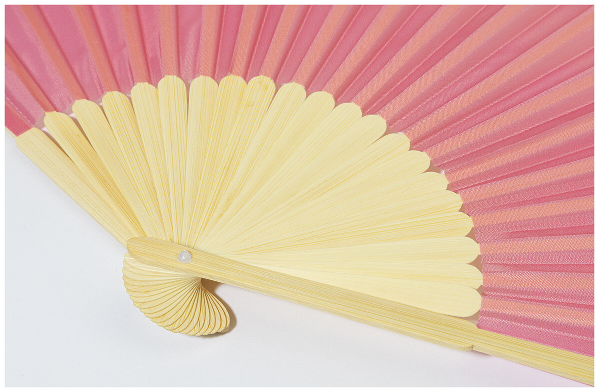 Vějíř z RPET polyesteru s bambusovými žebry.